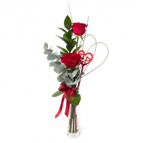 This delightful pairing of gorgeous roses with a contrast of foliage is a perfect gift for that special someone. Lovingly placed in a pretty vase made just for two.